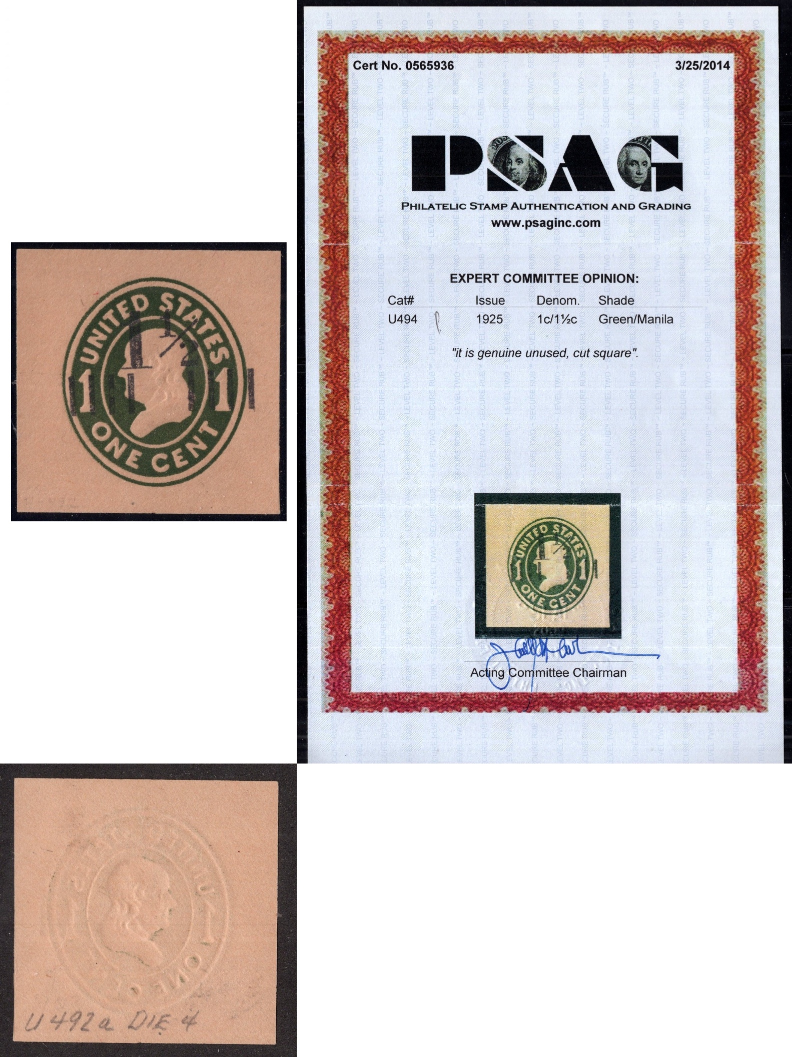 U494- EXTRA FINE - With a hinge remnant (With a PSAG Certificate) |